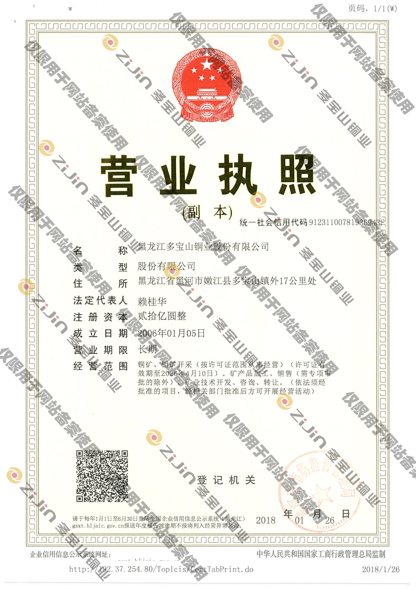 黑龍江多寶山銅業(yè)股份有限公司是紫金礦業(yè)集團股份有限公司的全資重點權屬企業(yè)。成立于2006年1月,注冊資本33.07億元,主導開發(fā)多寶山銅(鉬)礦、銅山礦,產(chǎn)品主要為銅金屬、鉬金屬及金、銀、錸等伴生貴金屬,日處理礦量規(guī)模達8萬噸。2023年產(chǎn)銅11.1萬噸,實現(xiàn)營業(yè)收入73.84億元,年末資產(chǎn)總額117億元。公司累計上繳稅收已突破80億元,不僅是黑河、嫩江兩級地方財政最主要的稅收來源之一,更是黑龍江省投資最多、生產(chǎn)能力最大的有色金屬礦山與低品位銅礦資源開發(fā)的典范,已然發(fā)展成為中...